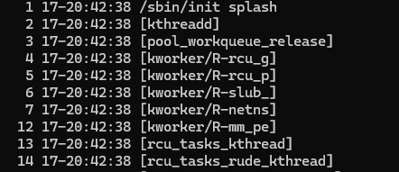 순서대로 PID, 프로세스가 실행된 후 경과한 시간 (일:시:분:초), cmd또는 프로세스명